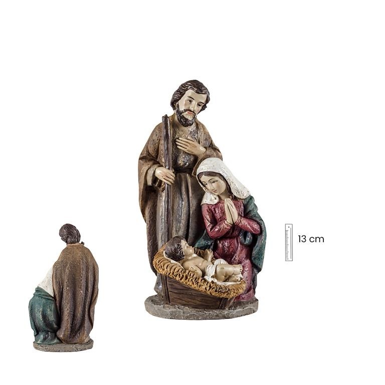 Sus medidas son 13 cm de altura, lo que la convierte en una figura de tamaño pequeño, perfecta para colocarse en belenes domésticos, altares o como adorno navideño en mesas y repisas.