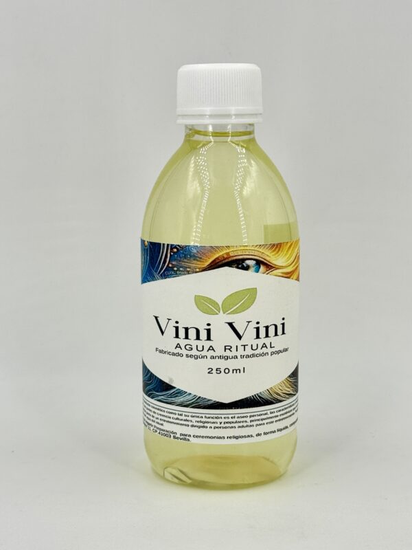l Agua Ritual Vini Vini es una preparación esotérica utilizada en trabajos de atracción, dominio y amor. Su nombre proviene del término «veni, veni» (ven, ven), invocando energías que atraen lo deseado hacia quien lo utiliza. Tiene una fragancia suave y dulce, que despierta vibraciones afectivas y sensuales, actuando como un imán energético.