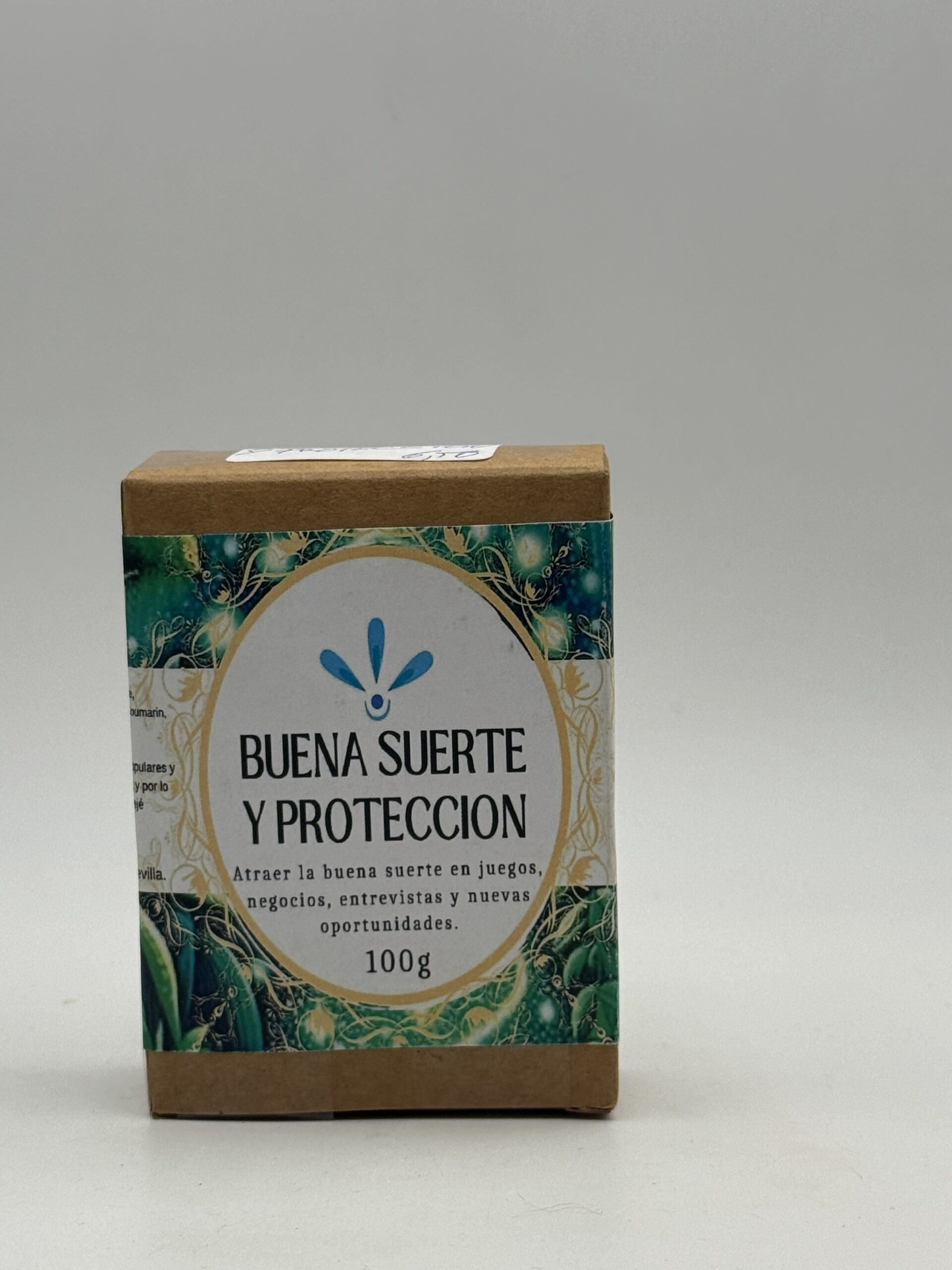 Buena Suerte y Protección» se utiliza en prácticas espirituales para atraer la buena fortuna y ofrecer protección contra influencias negativas. Este jabón se emplea durante el baño diario con el objetivo de aumentar la suerte del individuo y crear un escudo protector en su aura.