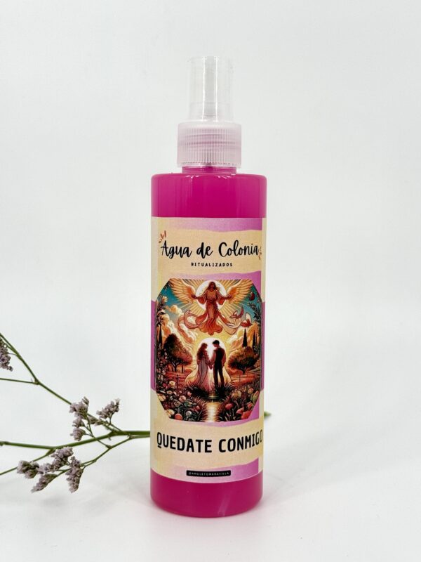 El agua de colonia «Quédate Conmigo» es una fragancia utilizada en prácticas esotéricas con la intención de atraer el amor, la fidelidad y la conexión emocional entre dos personas.