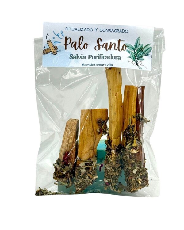 El Palo Santo con Salvia Purificadora es una poderosa combinación esotérica que une las propiedades sagradas del Palo Santo (protección, conexión espiritual y sanación) con la fuerza depurativa de la Salvia (limpieza, expulsión de energías densas y purificación del aura y los espacios).