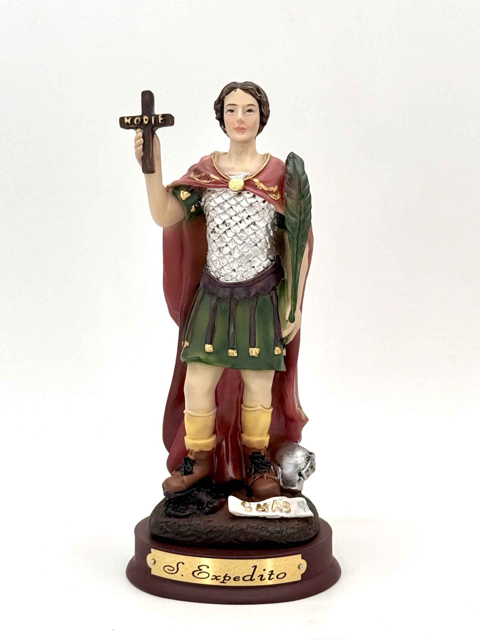 San Expedito es un santo muy popular en el mundo esotérico y devocional, conocido como el santo de las causas urgentes y justas. Se representa como un joven soldado romano, con una cruz en una mano que dice “HODIE” (hoy), y un cuervo bajo su pie que grita “CRAS” (mañana), simbolizando su rechazo a las demoras y su llamado a actuar de inmediato.