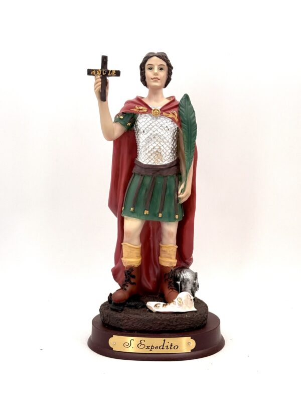 San Expedito es un santo muy popular en el mundo esotérico y devocional, conocido como el santo de las causas urgentes y justas. Se representa como un joven soldado romano, con una cruz en una mano que dice “HODIE” (hoy), y un cuervo bajo su pie que grita “CRAS” (mañana), simbolizando su rechazo a las demoras y su llamado a actuar de inmediato.