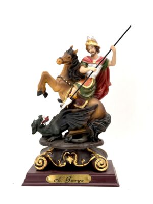 San Jorge es un santo guerrero, venerado por su valentía y poder espiritual. Su imagen más conocida lo muestra montado a caballo, con armadura y lanza, venciendo a un dragón, símbolo del mal. Es patrón de soldados, defensores, y personas que luchan contra enemigos visibles e invisibles.