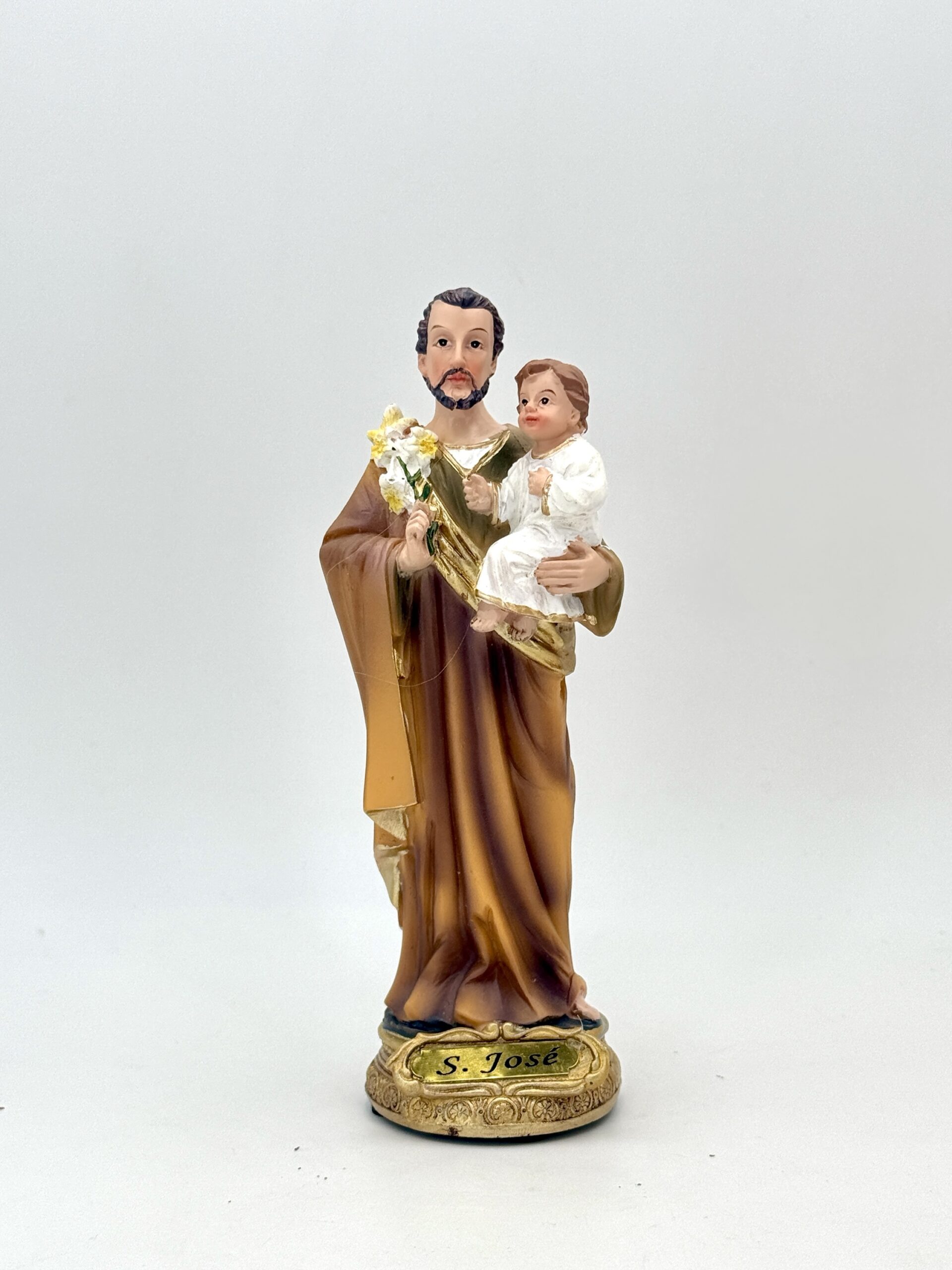 San José con el Niño es una representación del padre terrenal de Jesús portando en brazos al Hijo de Dios. Es símbolo de protección, trabajo honesto, familia, fe y guía paternal. Su figura representa la humildad, la obediencia a lo divino y la estabilidad del hogar.