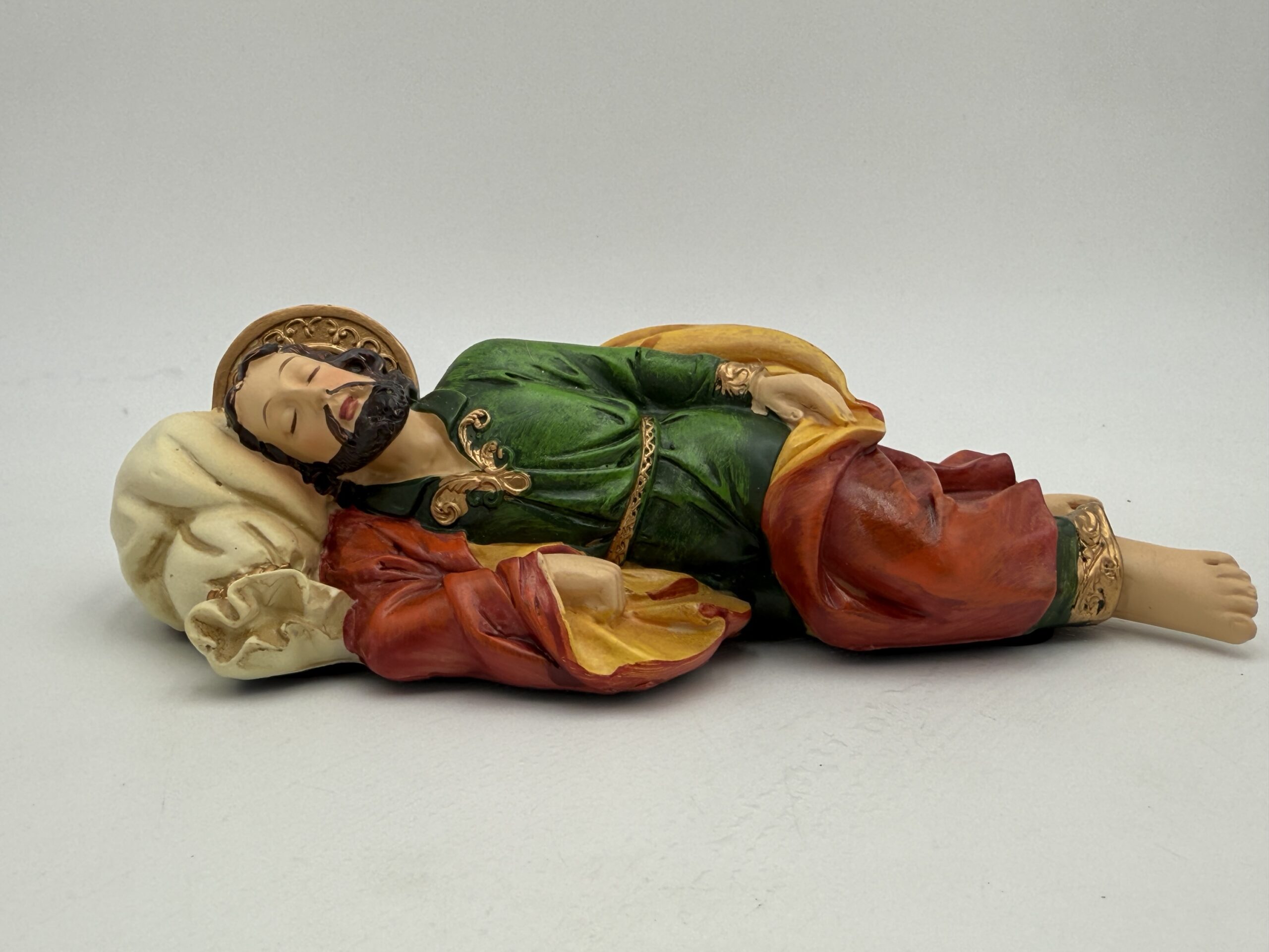 San José Dormido representa a San José, el padre terrenal de Jesús, en un estado de descanso profundo. Esta imagen se basa en los evangelios donde Dios le habla en sueños para guiarlo, proteger a la Sagrada Familia y tomar decisiones importantes.
