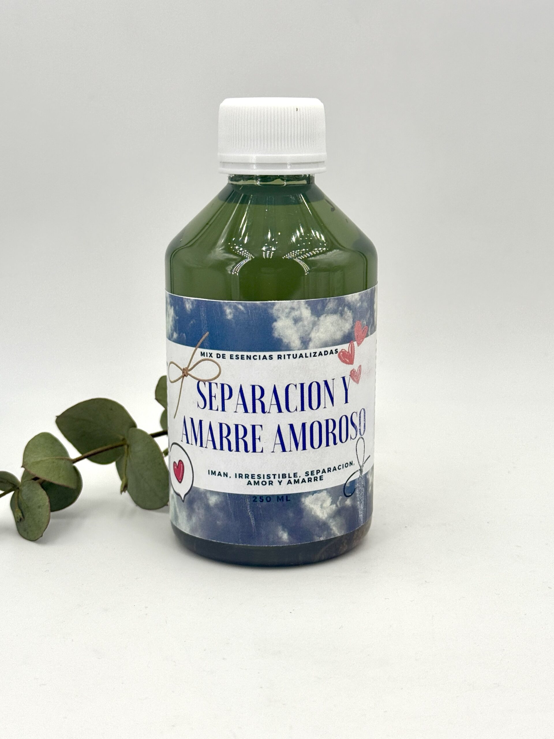 La Esencia “Separación y Amarre Amoroso” es una mezcla esotérica diseñada para trabajar en situaciones donde se busca separar energías negativas o terceras personas que interfieren en una relación, y al mismo tiempo fortalecer o amarrar el amor entre dos personas. Esta esencia actúa tanto para limpiar influencias dañinas como para consolidar el vínculo afectivo deseado.